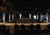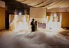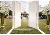 Double Entry Door, Cape Winds Arch, 24" Hourglass Vase, Colonade Arch, 10' x 10' White Sheer Drape