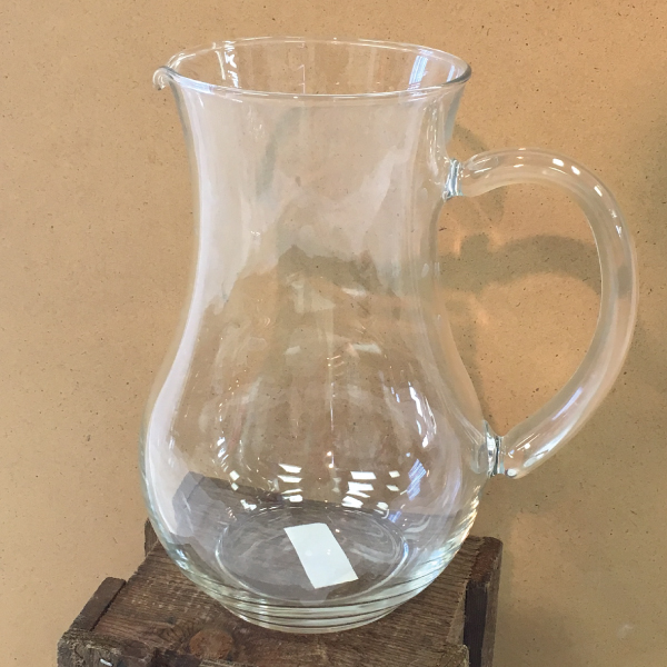 2-Quart Small Glass Pitcher with handle. Works great for Sunday brunch, bridal showers, and morning events.