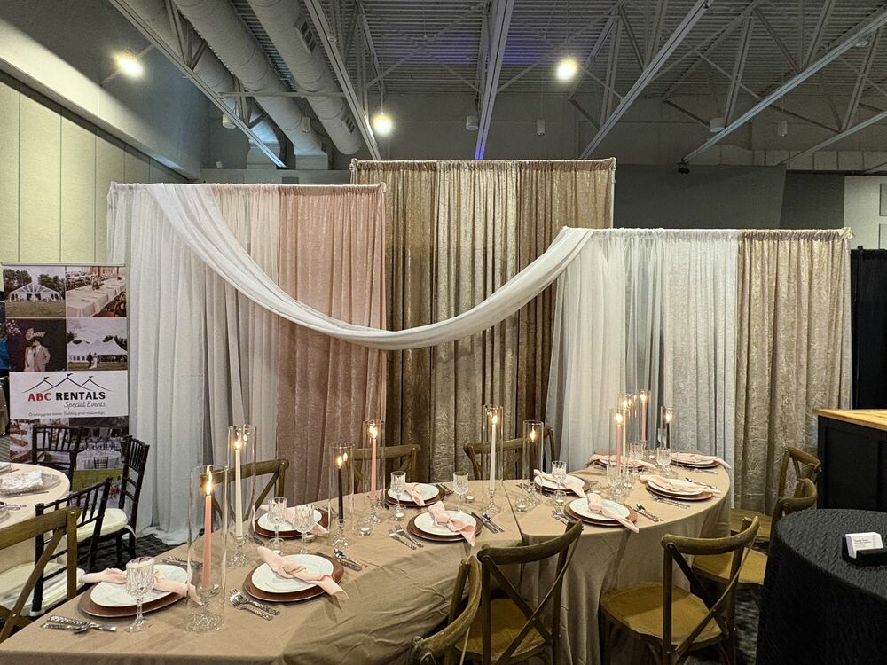 Please note: DO NOT use pins, staples, or tape on any drape rented from ABC Rentals. Pins, staples, or tape found on returned drape will result in additional charges. S hooks are available for hanging items on the drape such as lights, tulle, or other garlands.