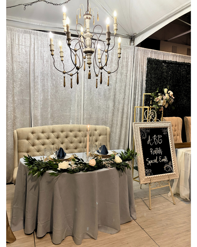 Please note: DO NOT use pins, staples, or tape on any drape rented from ABC Rentals. Pins, staples, or tape found on returned drape will result in additional charges. S hooks are available for hanging items on the drape such as lights, tulle, or other garlands.